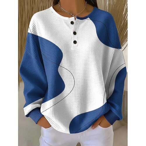 tunica da donna moda casual stampa manica lunga regolare top scollo a V quotidiano rosso blu verde primavera autunno