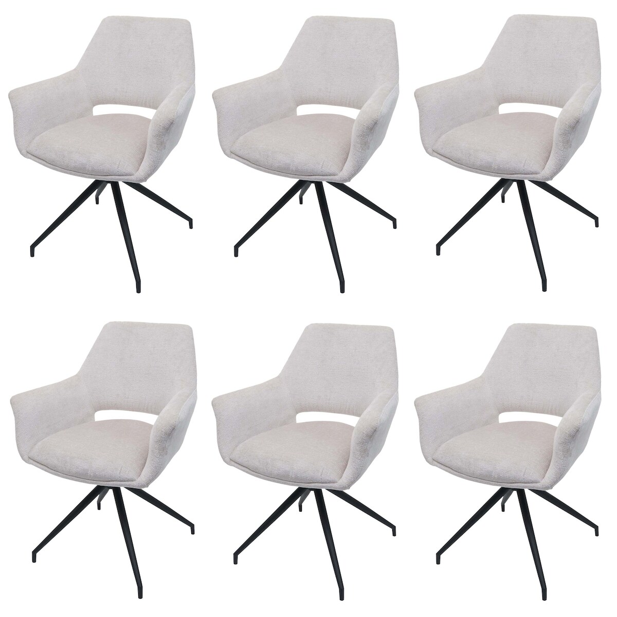 Mendler 6er-Set Esszimmerstuhl HWC-M53, Küchenstuhl Stuhl mit Armlehne, drehbar Auto-Position, Metall Stoff MVG ~ creme-weiß