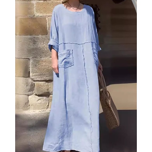 Per donna Taglie Forti Vestito Casual Tinta unica Girocollo Manica 3/4 Primavera Autunno Elegante Moda Moderno Casual Mini abito Quotidiano Ferie Vestito
