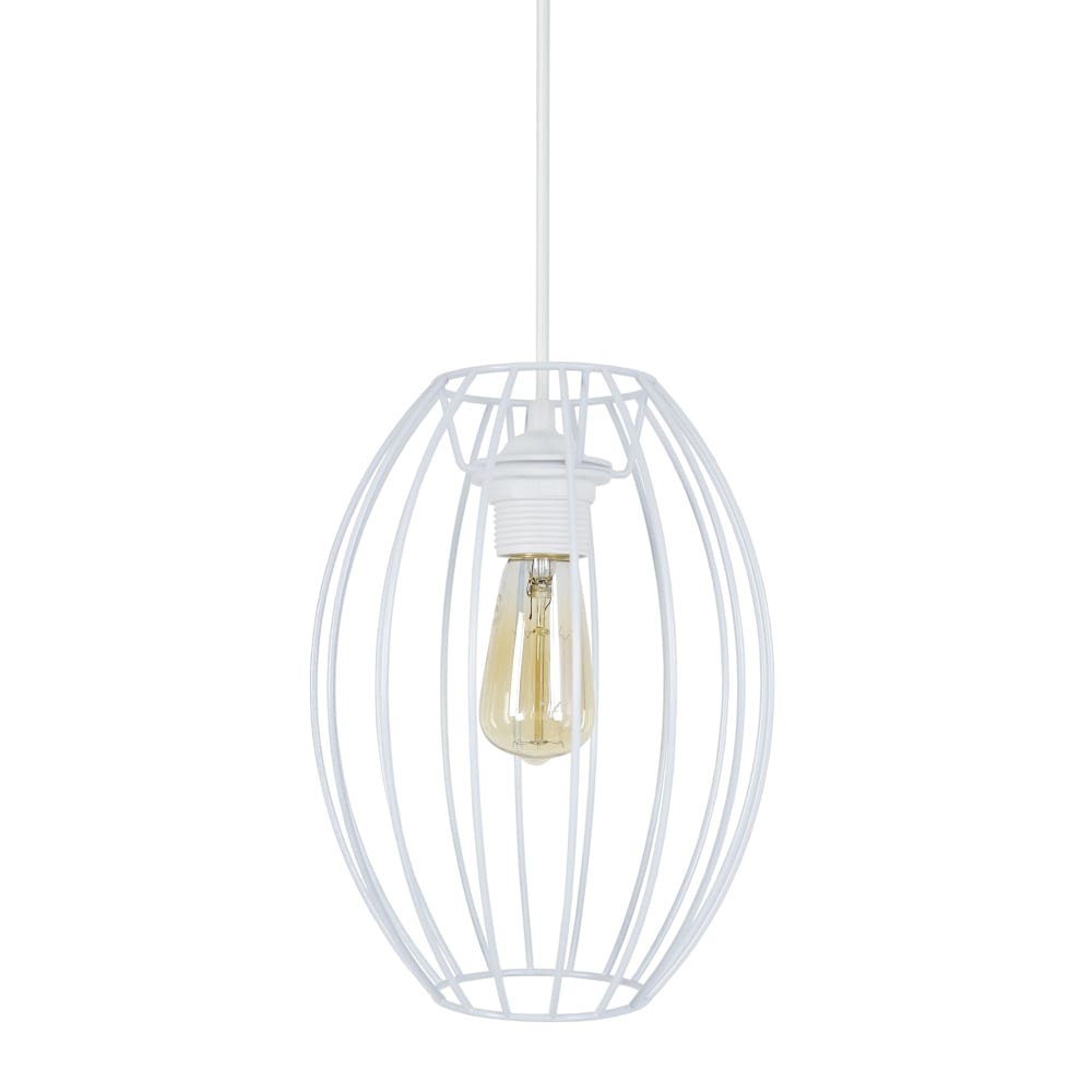 Sospensione metallo ; Alt.85cm nero ;Paralume: blanco
