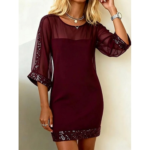 Per donna Mini Abito Abito a Tubino Casual Quotidiano Vestibilità regolare Semplice Manica 3/4 Girocollo Nero Vino Blu marino Estate Primavera