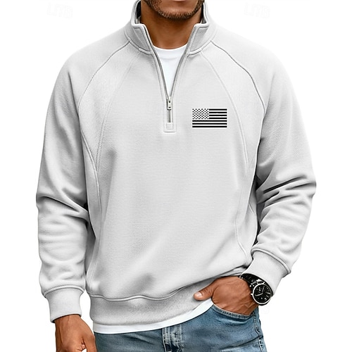 Giorno dell'Indipendenza Americana Per uomo Polo Polo con zip Maglia da golf Manica Lunga Magliette polo Zip a un quarto Sport Moda Casual Quotidiano All'aperto Vacanza Cerniera Stampato Primavera
