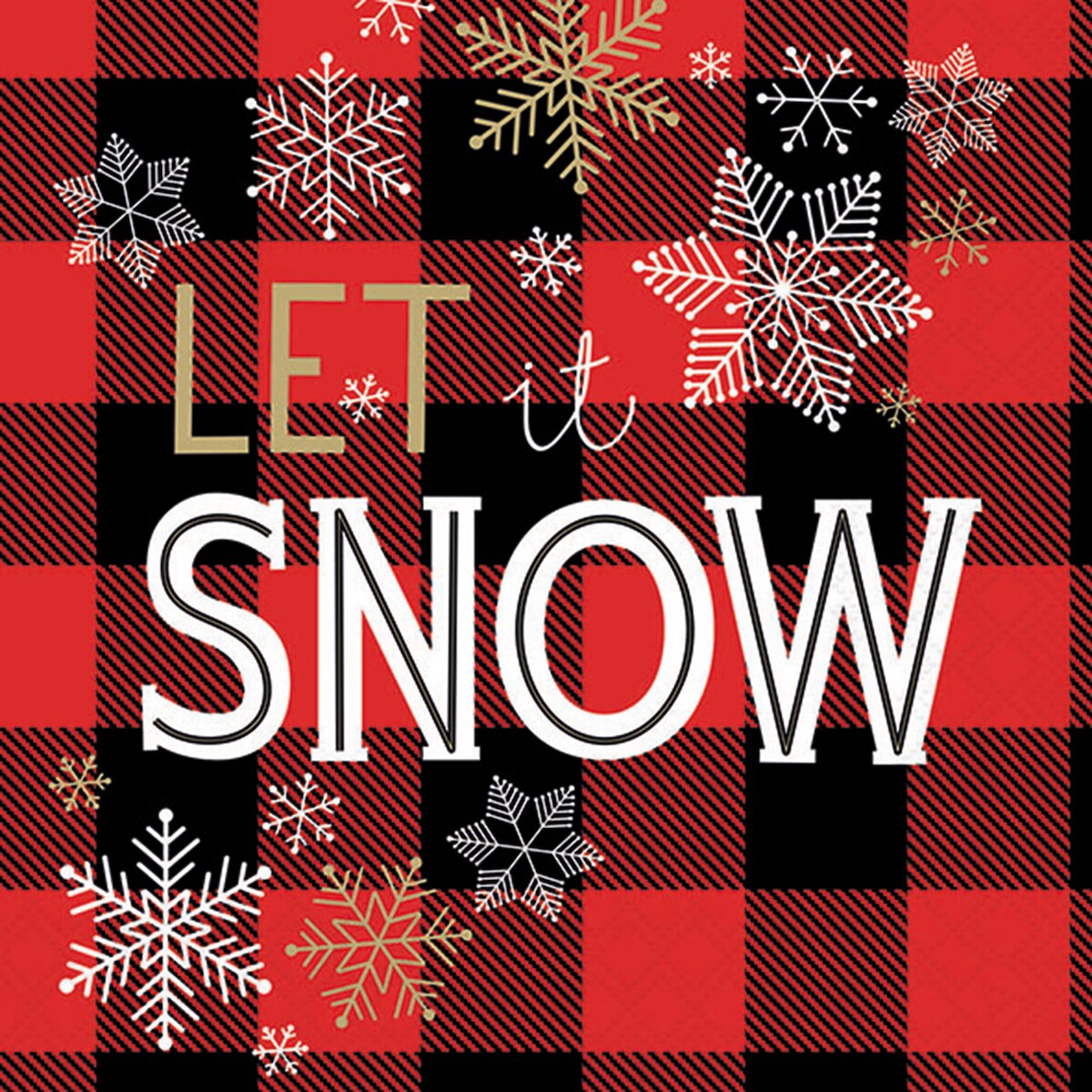 Ambiente 20 Servietten Papier 33x33cm 3-lagig - hochwertige Einweg Papierservietten mit Let it Snow Motiv - rot schwarz kariert mit Schneeflocken Tischdeko