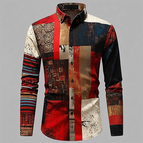 Per uomo Blocco di colori Patchwork Camicia Camicia con Bottoni Manica Lunga Vintage Retrò All'aperto Quotidiano Abbigliamento casual alla moda Primavera Autunno Collo ripiegato Stampa 3D Una tasca