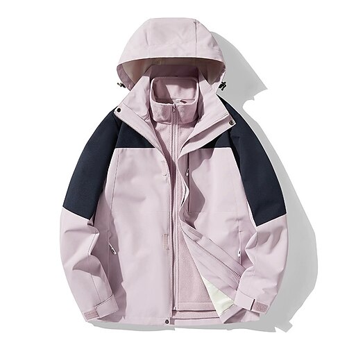 Per donna Giacca impermeabile 3 in 1 Con cappuccio Antivento Confortevole Cerniera Tasca Casual Blocco di colori All'aperto Vacanza Streetwear Abbigliamento quotidiano Cerniera Corto Con Cappuccio