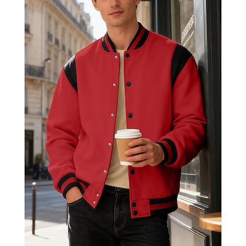 Per uomo Giacca Leggera Giacca Casual Giacca College All'aperto Vacanza Patchwork Tasca Primavera Autunno Blocco di colori Streetwear Elegante Collo alla coreana Regolare Grigio scuro Nero Vino Blu