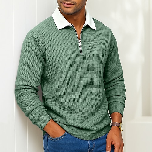 Per uomo Magliette Polo a Nido d'Ape Testurizzato Streetwear Casuale Collo ripiegato Manica Lunga Moda Tempo libero Blocco di colori Con zip Patchwork Autunno Primavera Autunno Tutte le stagioni