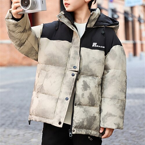 Bambini Ragazzi Giacca in piuma Giacca da esterno Capispalla Blocco di colori Manica Lunga Tenere al caldo Antivento Cappotto Casuale Quotidiano Essenziale Verde Grigio mimetico Grigio Autunno Inverno