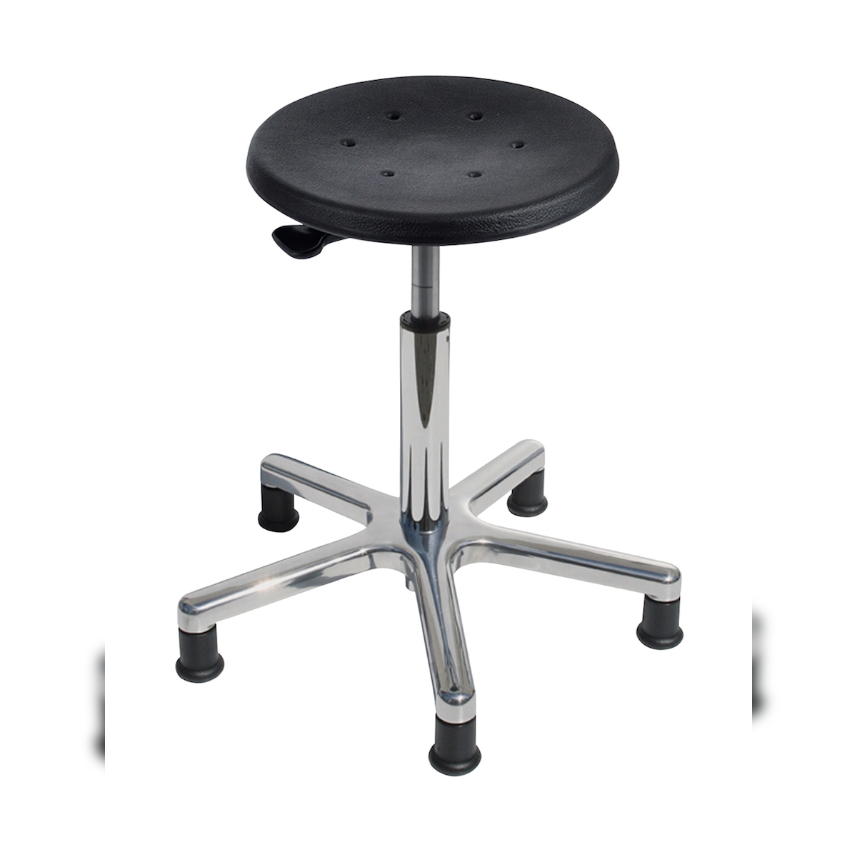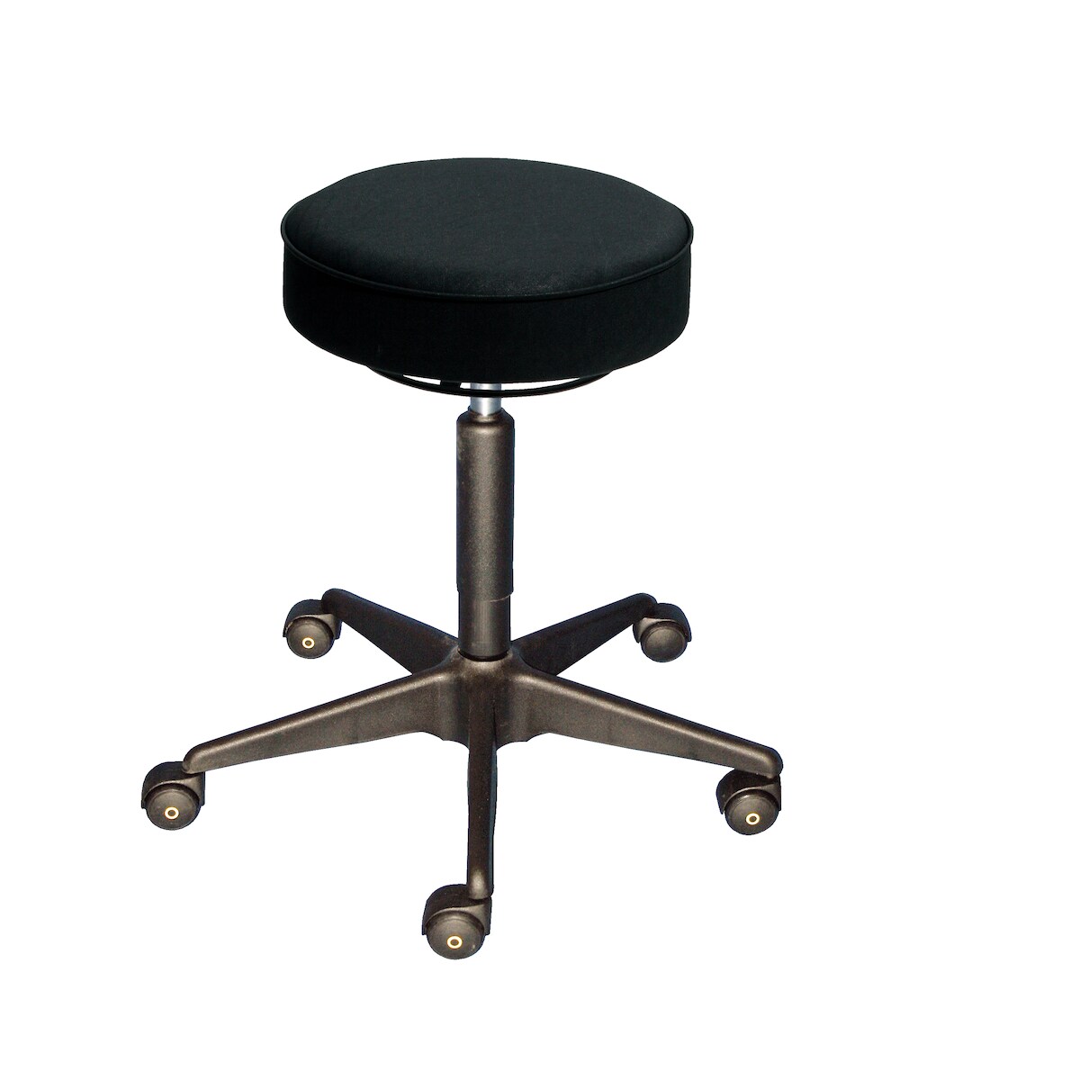 PROREGAL Drehhocker Atlanta Sitzhöhe 40-53cm Tragfähigkeit 110kg, Polyurethane-Sitz, Kunststof-Fußkreuz, Ablageschale, Rollen, Ringauslösung, Schwarz