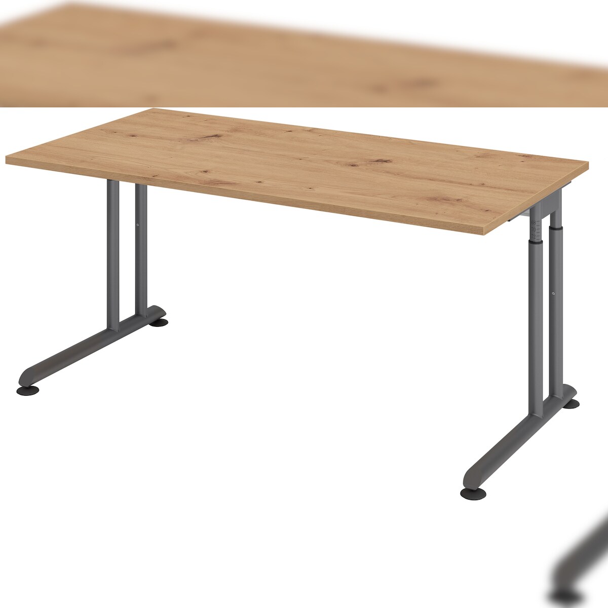 bümö höhenverstellbarer Schreibtisch Z-Serie 160x80 cm in Asteiche, Gestell in Graphit - PC Tisch für's Büro manuell höhenverstellbar, Computertisch
