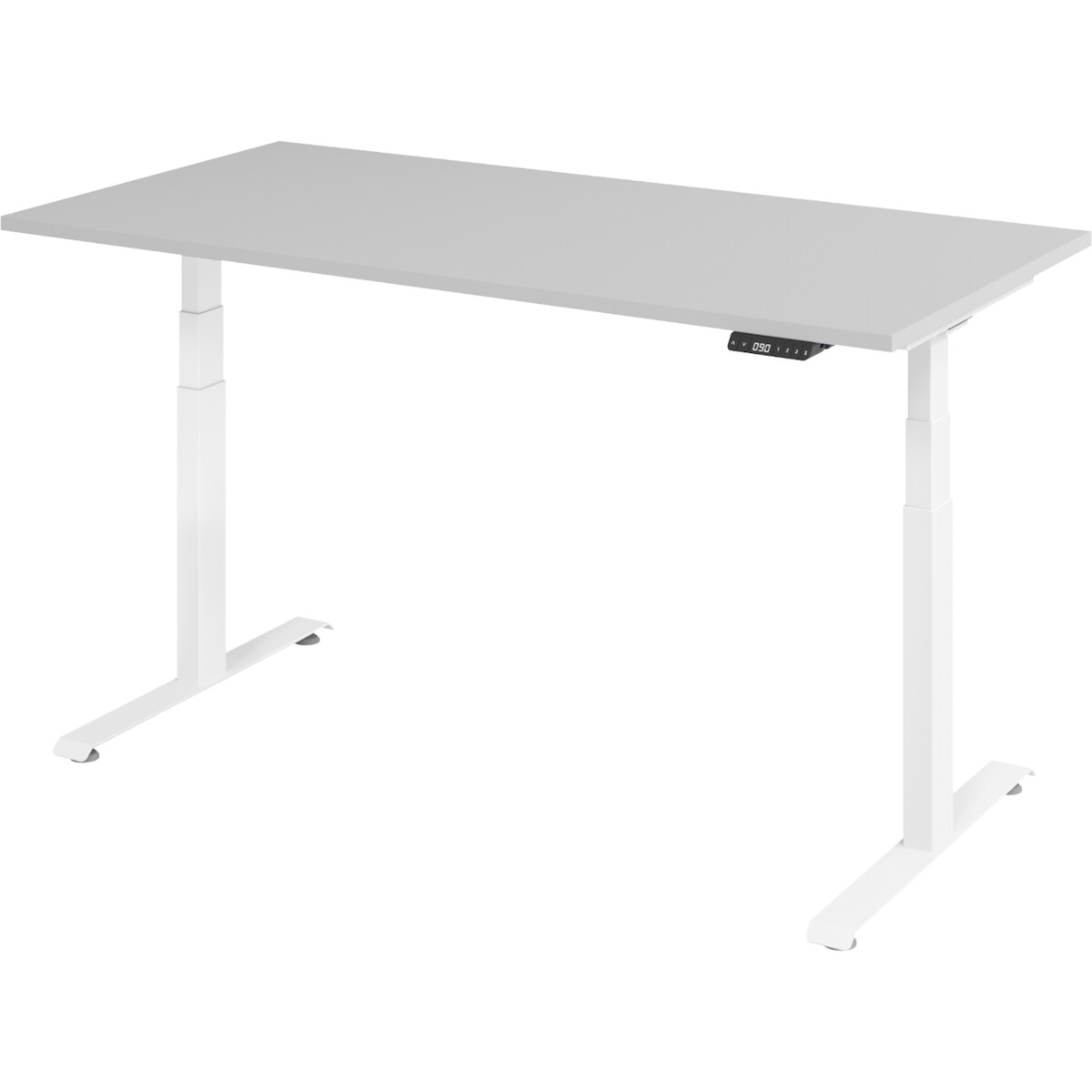 bümö höhenverstellbarer Schreibtisch 160 x 80 cm in grau, Gestell weiß - Höhenverstellbar Elektrisch Stehpult mit 3-fach Speicher, Computertisch,