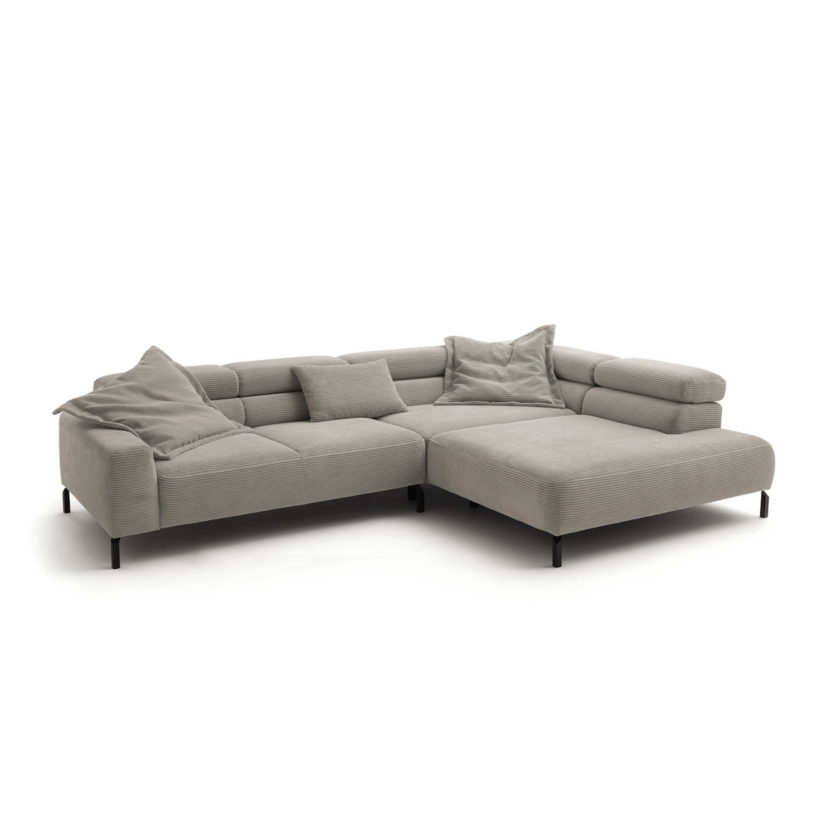 KAWOLA Sofa DELIA Ecksofa XL Cord steingrau mit motorischem Sitzvorzug Recamiere rechts