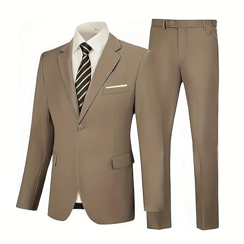 Uomo Matrimonio Casuale Abiti da lavoro Bavero classico Marrone Casual Formale Tinta unita Vestibilità su misura 2 pezzi Monopetto a un bottone