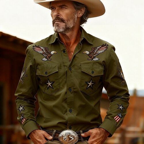 Per uomo Stelle Aquila Bandiera degli Stati Uniti Camicia Camicia Western Camicia da cowboy Manica Lunga Vintage Retrò All'aperto Casuale Abbigliamento da lavoro Primavera Autunno Collo ripiegato Due