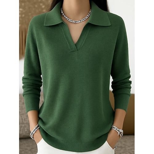 Per donna Felpa Elegante Quotidiano Colletto Polo Lavorato a maglia Manica Lunga Top Regolari Maglia Quotidiano Weekend Nero Bianco Primavera Autunno