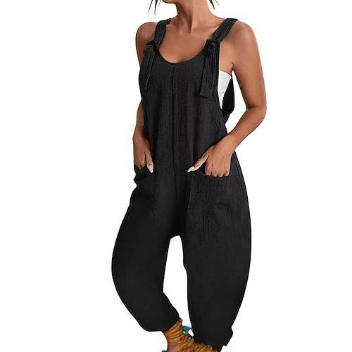 Per donna Tuta Attivo Tinta unica Senza Maniche Harem Collo a U Patchwork Tasca Quotidiano Vacanza Vestibilità regolare Nero Rosa Rosso Estate