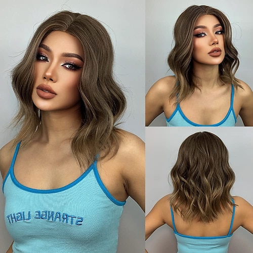parrucche lunghe ondulate castano ramato chiaro per le donne parrucche da donna con riga centrale parrucche da 24 pollici per le donne parrucche sintetiche dall'aspetto naturalepelucas de cabello