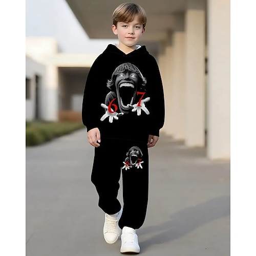 Unisex Ragazzi 3D Grafico Gergo divertente 67 Set Felpa con cappuccio Pantaloni della tuta Tuta sportiva Tute da ginnastica Manica Lunga Stampa 3D Primavera Autunno Sport Moda Casual Bambini 4-12