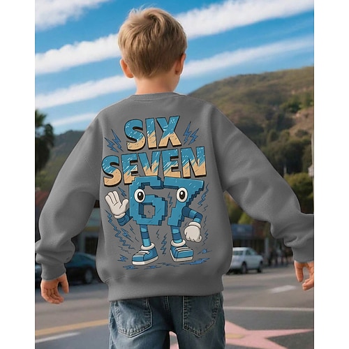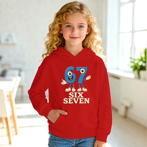 Unisex Ragazze 3D Grafico Gergo divertente 67 Felpa con Cappuccio Maglione Manica Lunga Stampa 3D Primavera Autunno Sport Moda Streetwear Bambini 4-12 Anni Con cappuccio All'aperto Casuale Quotidiano