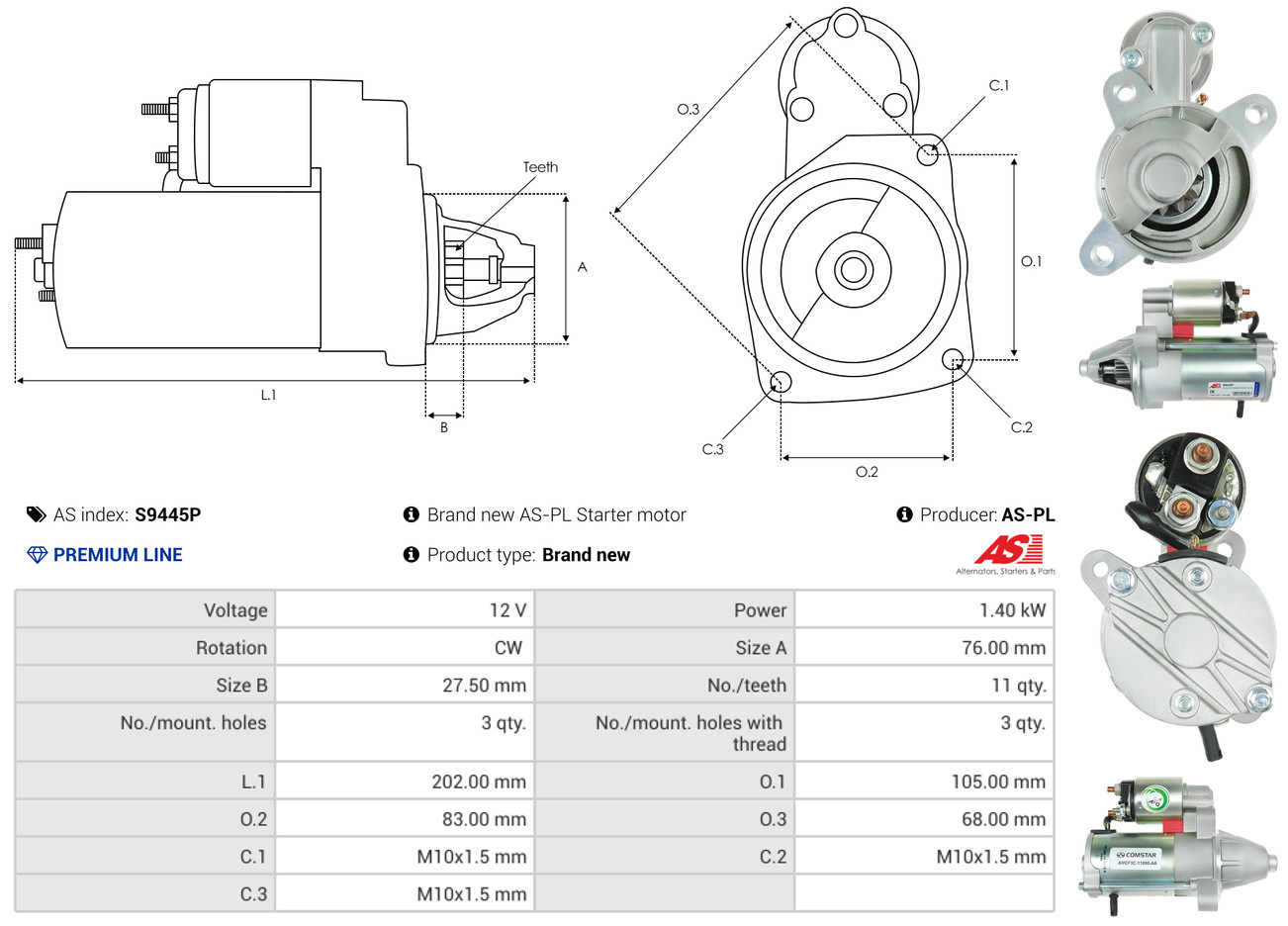AS-PL Starter S9445P 12V für FORD AMEF3C-11000-AA AMEF3C-11000-BA CV6T-11000-DB