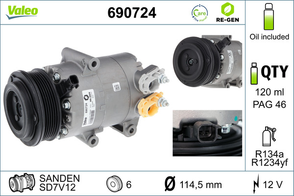 VALEO Kompressor, Klimaanlage 690724 12V für FORD 2034050 H1F119D629GA