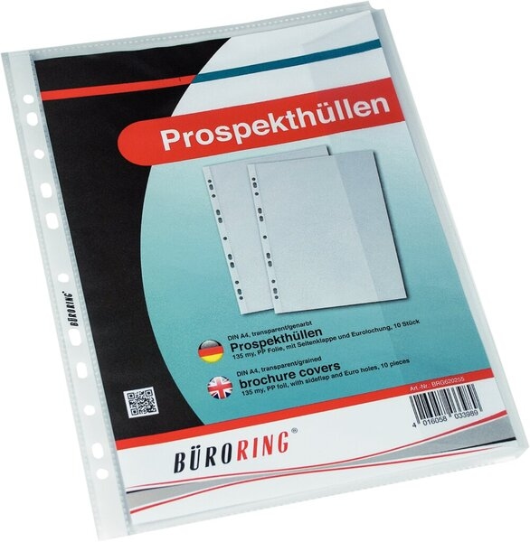 Büroring Prospekthülle A4, mit Klappe, rechts seitlich offen, 1 Beutel = 10 Hüllen, Folie 135 my, genarbt