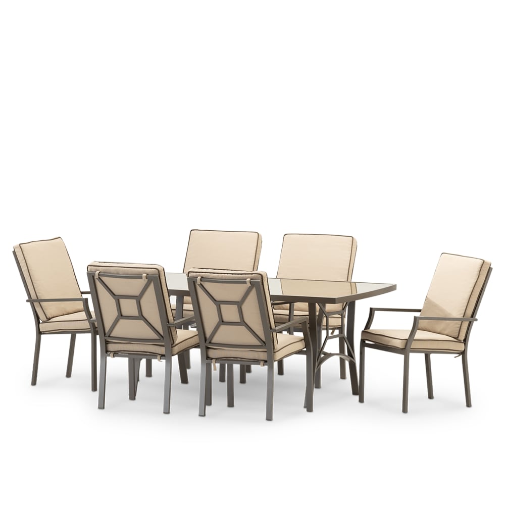 Set da giardino tavolo e 6 sedie impilabili con cuscino