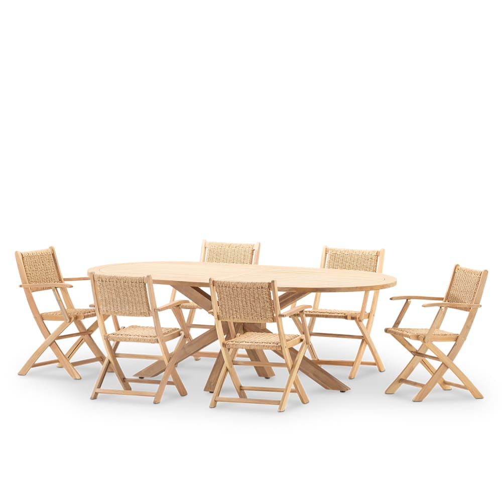 Set tavolo ovale 220x115 e 6 sedie con braccioli