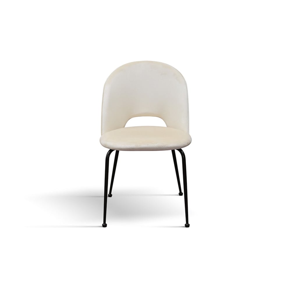 Set di 4 sedie in tessuto effetto velluto beige, gambe antracite