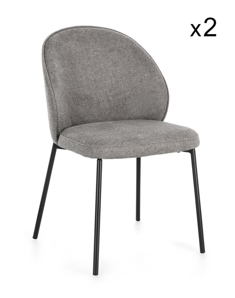 Set di 2 sedie in tessuto grigio e gambe acciaio nere