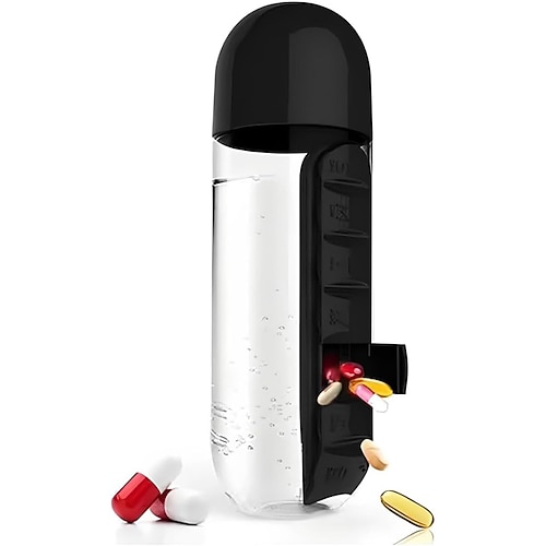 borraccia con organizer settimanale per pillole, 2 in 1, contenitore per medicinali, bicchiere per acqua, contenitore per medicinali, borraccia sportiva giornaliera da 20 once con organizer per