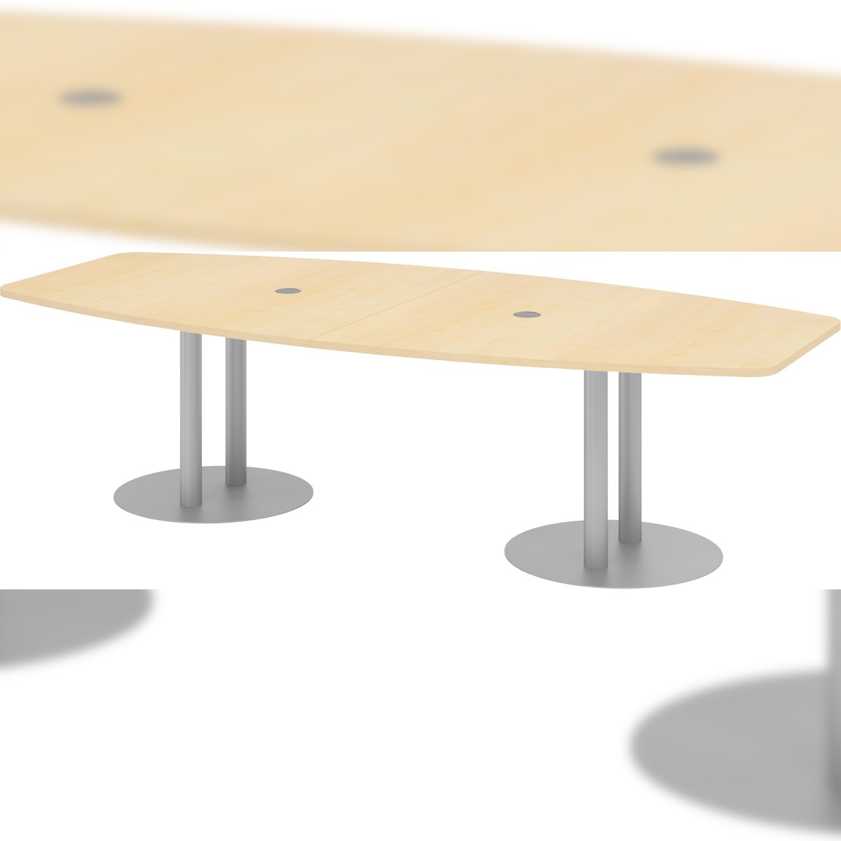 bümö Konferenztisch oval 280x130 cm großer Besprechungstisch in Ahorn, Besprechungstisch mit Säule in silber, Meetingtisch für 10 Personen, XXL-Tisch