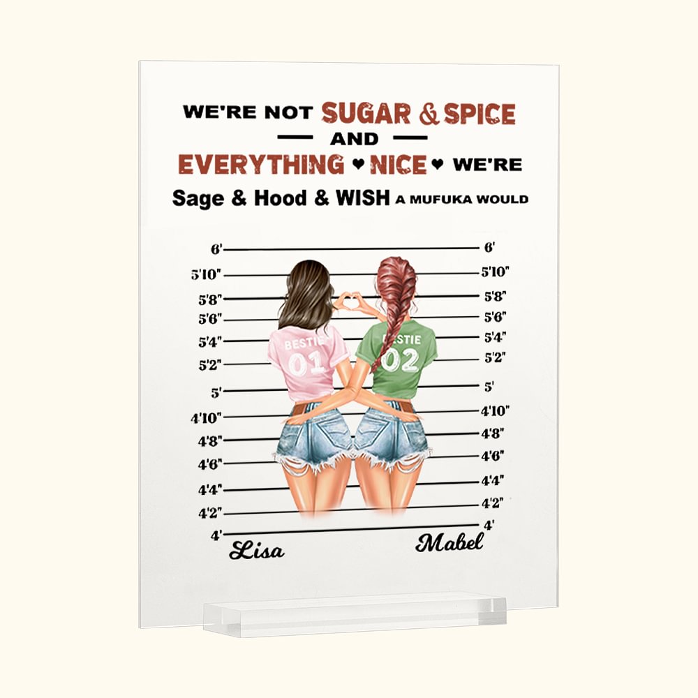 Gepersonaliseerde We're Not Sugar and Spice and Everything Nice We're Sage and Hood and wish a Mufuka Would Acrylic Plaque Besties Gift
