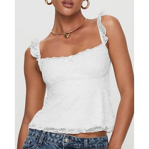 Per donna Blusa Canotta a canotta Maglietta senza maniche Bordo in pizzo Senza schiena Semplice Elegante Sexy Senza Maniche Colletto a Camicia Top corti Quotidiano Abbigliamento da sera Ferie Blu