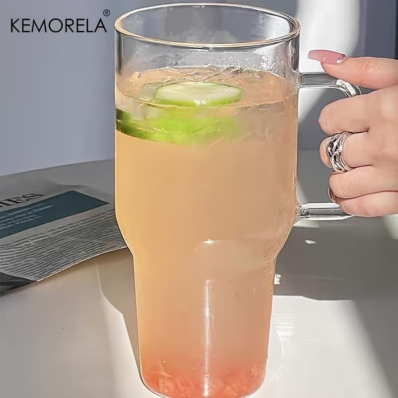 KEMORELA 1/2PCS 40oz Large Glass Tumbler with Straws and Lids Glass Coffee Tumbler with Handle Clear Water Bottle for CarCamping