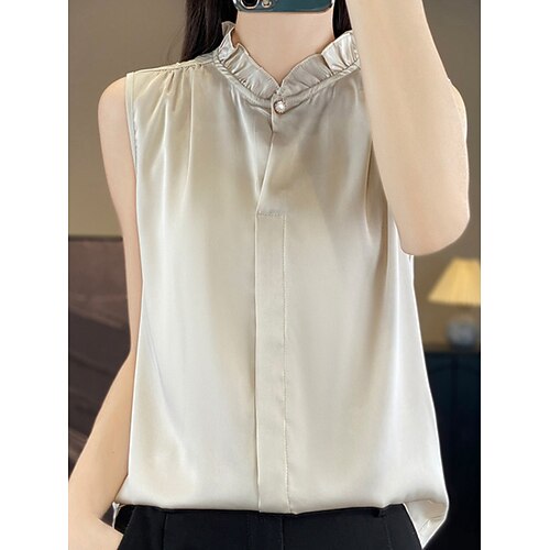 Per donna Canotta a canotta Volant Tinta unica Quotidiano Elegante Essenziale Senza Maniche Collo Alto Top Regolari Quotidiano Blu Nero Bianco Champagne Verde Estate Primavera