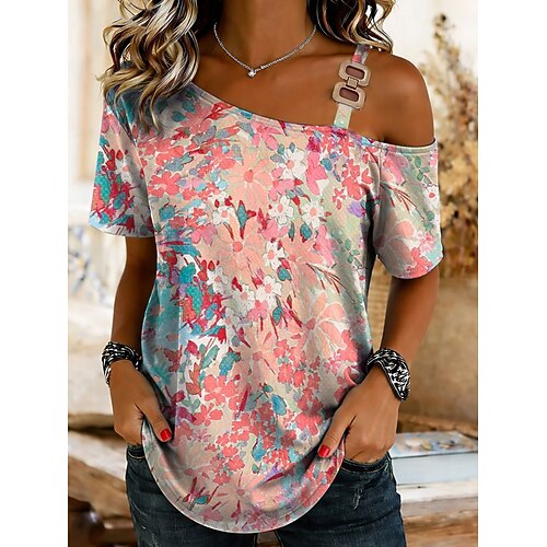Per donna Maglietta Asimmetrico Grafico Geometrico Vintage Tropicale Hawaiano Manica Corta Monospalla Collo asimmetrico Top Regolari Quotidiano Sportivo Uscire Bianco Rosa Verde Cachi Estate Primavera
