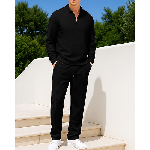 Per uomo Tuta da 2 pezzi Set di tute da ginnastica Abiti da salotto Cerniera a un quarto Tinta unita Completo Abbigliamento Autunno Nero Bianco All'aperto Viaggio Sportivo Traspirante Manica Lunga