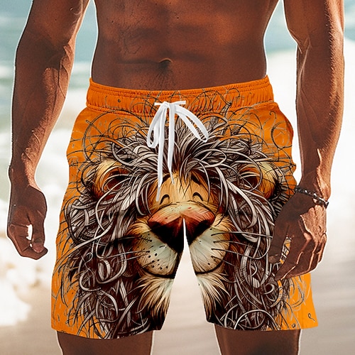Per uomo Cartoni animati Leone Divertente Costumi da bagno Pantaloncini da mare Pantaloncini da Surf Misura del girovita medio Hawaiano Vacanza al Mare Tasche Laterali fodera in rete Coulisse