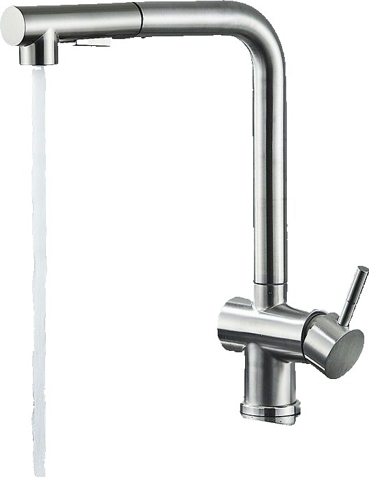 KLARWERK FELIX| Premium Edelstahl ausziehbare Küchenarmatur Silber gebürstet | Mischbatterie gerader Auslauf | Wasserhahn Gastro Hochdruck 360° 2 Anschlüsse