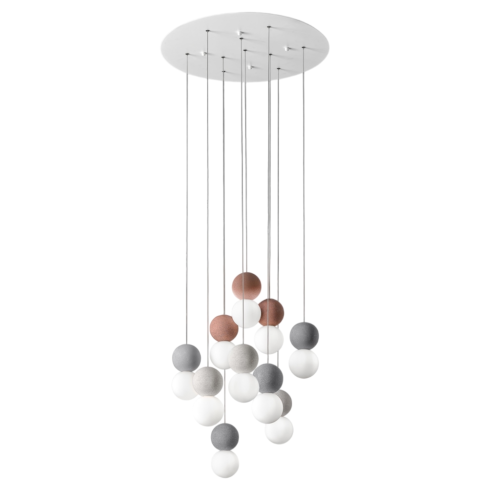 Gea Luce Sfera - 10-flammige Pendelleuchte mit Betonkugeln und Opalglas - 10 x G9, max. 10 x 7 W, modernes Design, IP20, ohne Leuchtmittel