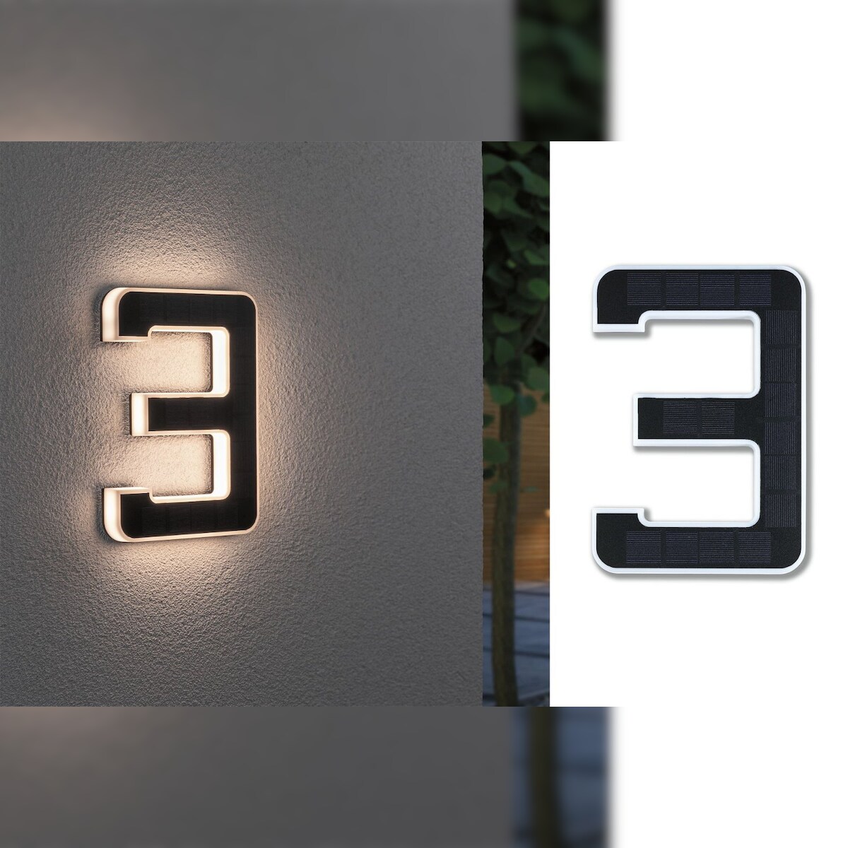 Paulmann Solar LED Hausnummernleuchte inkl. wechselbarer Akku Nummer 3 inkl. wechselbarer Akku IP44 3000K 6lm Schwarz 79844