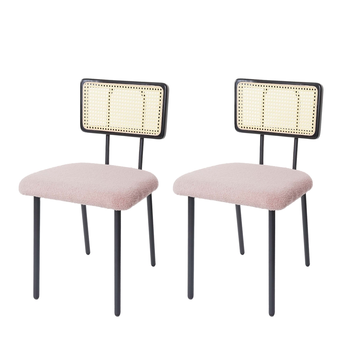 Mendler 2er-Set Esszimmerstuhl HWC-K88, Lehnstuhl Stuhl, Holz Poly-Rattan Metall Bouclé ~ Stoff/Textil rosa