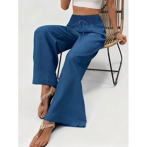 Per donna Taglia standard asiatici Chinos Pantaloni Larghi Leggero Casual Lunghezza intera Vita AltaPantsSan Valentino Tinta unita Coulisse Spacco Traspirante Asciugatura Rapida Leggero Micro-elastico