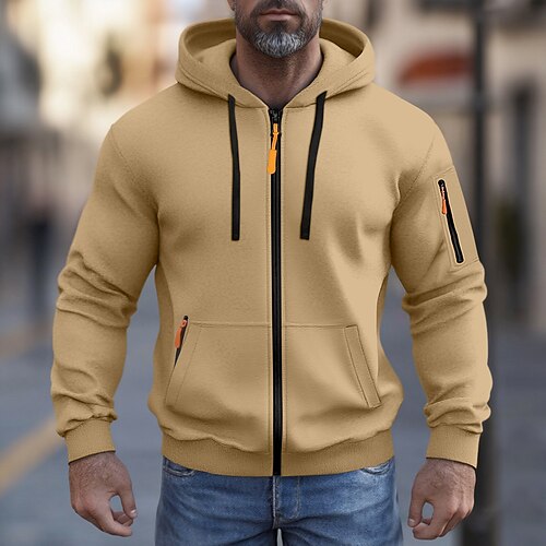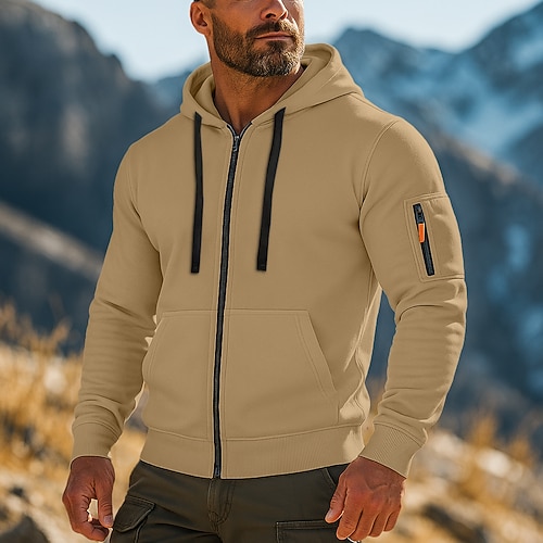 Per uomo Felpa con cappuccio Felpa con cappuccio a zip intera Felpa con cappuccio in pile Felpa con cappuccio tattica Nero Bianco Verde militare Rosso Blu marino Colletto Mao Semplice Cerniera Sport
