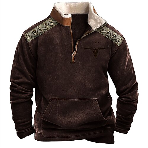 Per uomo Maglia Felpa in pile Felpa con zip corta Nero Verde militare Marrone Cachi Caffè Mezza zip Mucca Patchwork Mezza cerniera Sport Outdoor Quotidiano Ferie Poliestere Streetwear Essenziale