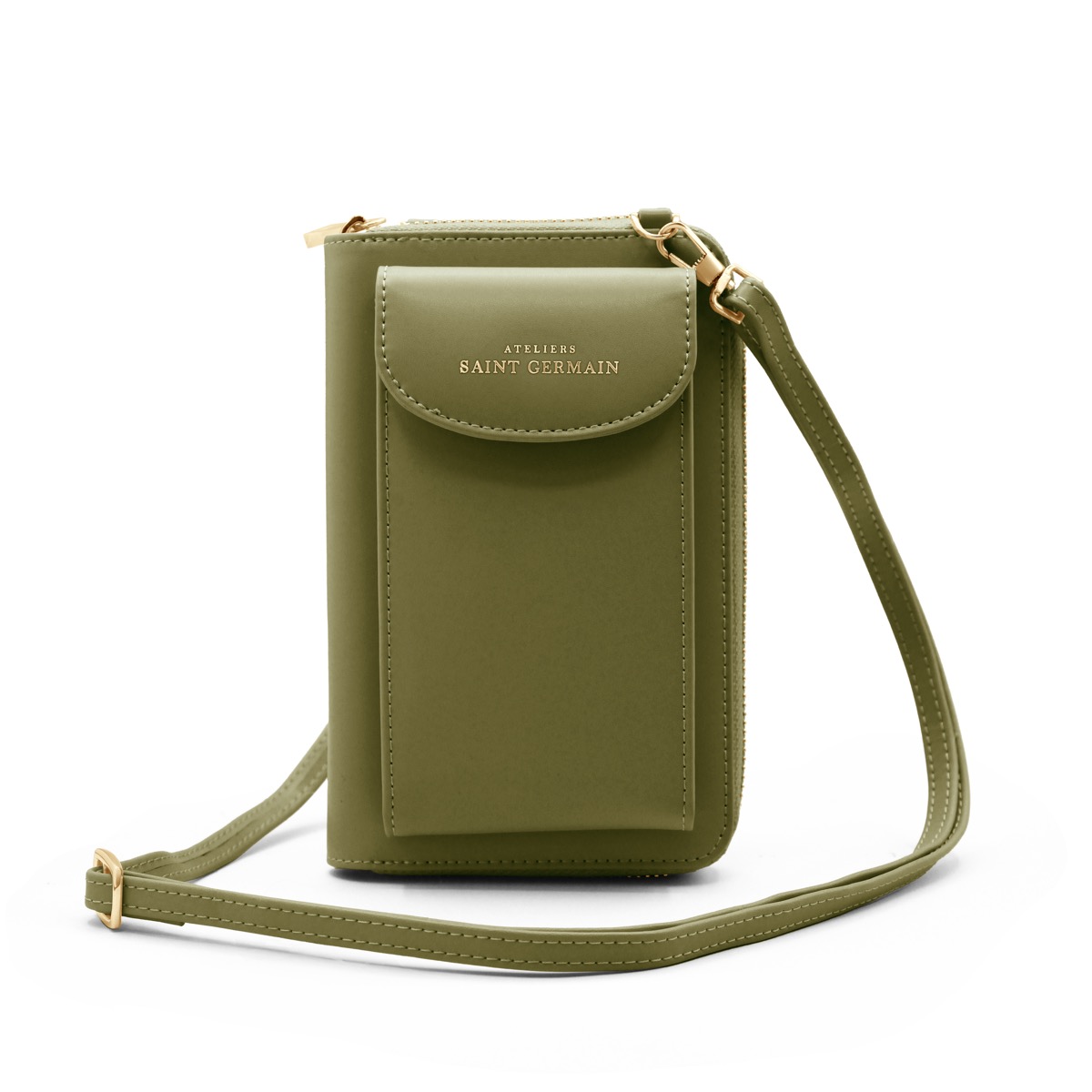 Ateliers Saint Germain Womens Smartphone Pouch London - Khaki Leather - One Size | Ateliers Saint Germain Sale | Discount Designer Brands
