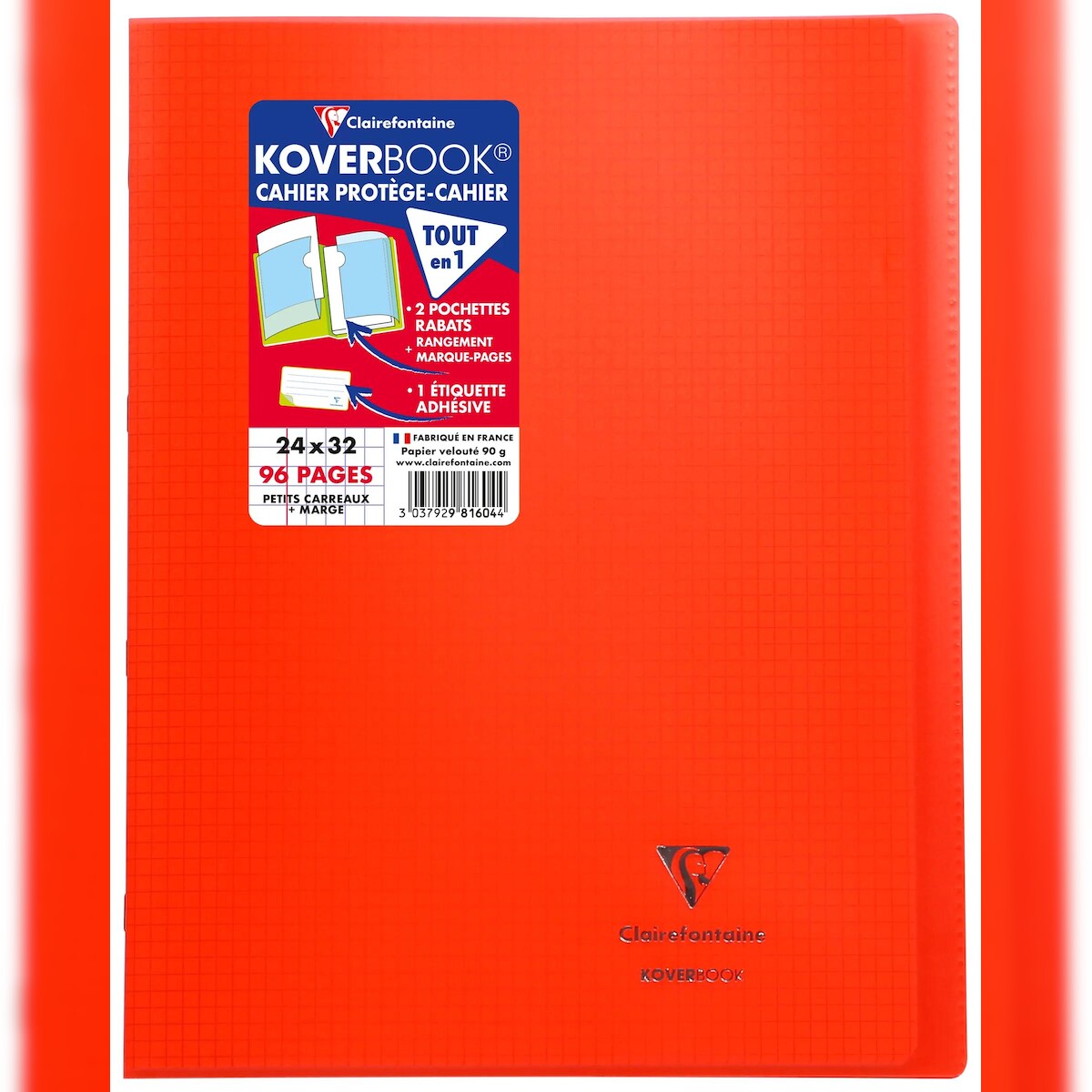 Clairefontaine 10x Koverbook, Heft 24x32 cm, 48 Blatt 90g,kariert 5/5 mit Rand, Einband aus transparentem Polypropylen - Rot 981604C