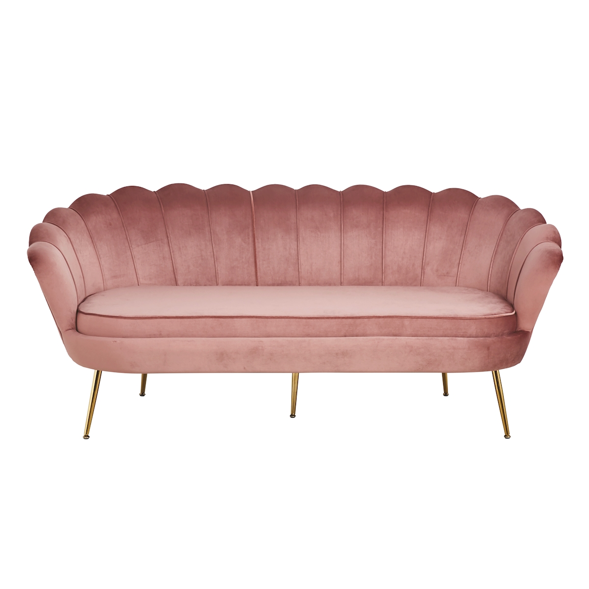 SalesFever Muschel-Sofa | 3-Sitzer | Bezug Samt-Stoff rose | Gestell Metall goldfarben | B 180 x T 76 x H 78 cm