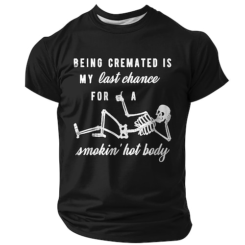 Maglietta grafica divertente da uomo 'Essere cremato è la mia ultima possibilità per un corpo da urlo' umorismo nero con scheletro